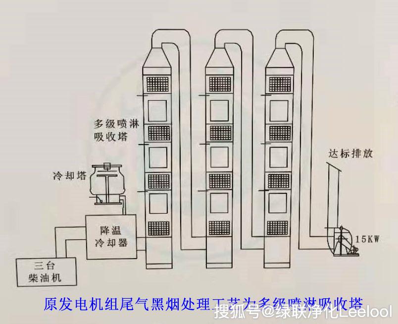 柴油发电机组尾气原处理工艺为“三级水喷淋吸收塔”