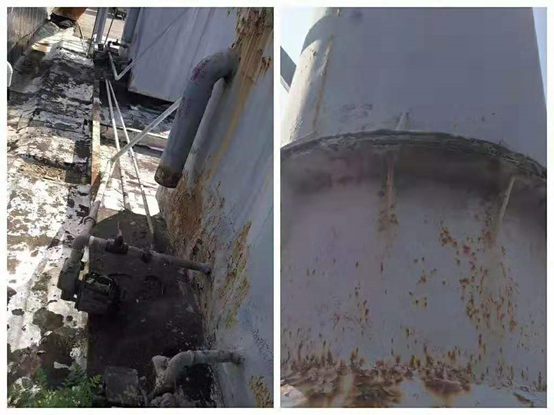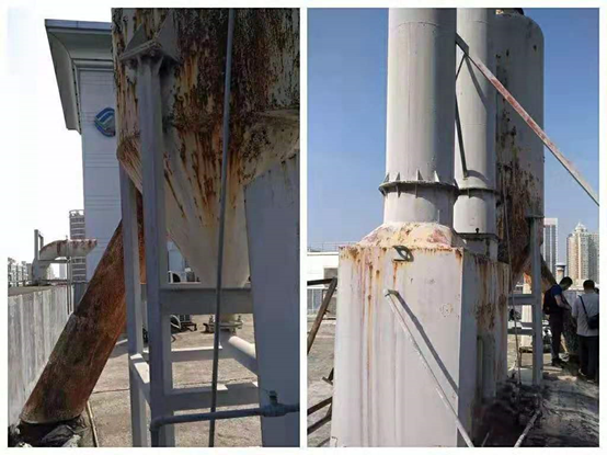 改造前楼顶两台旋流塔水喷淋处理设备锈蚀严重