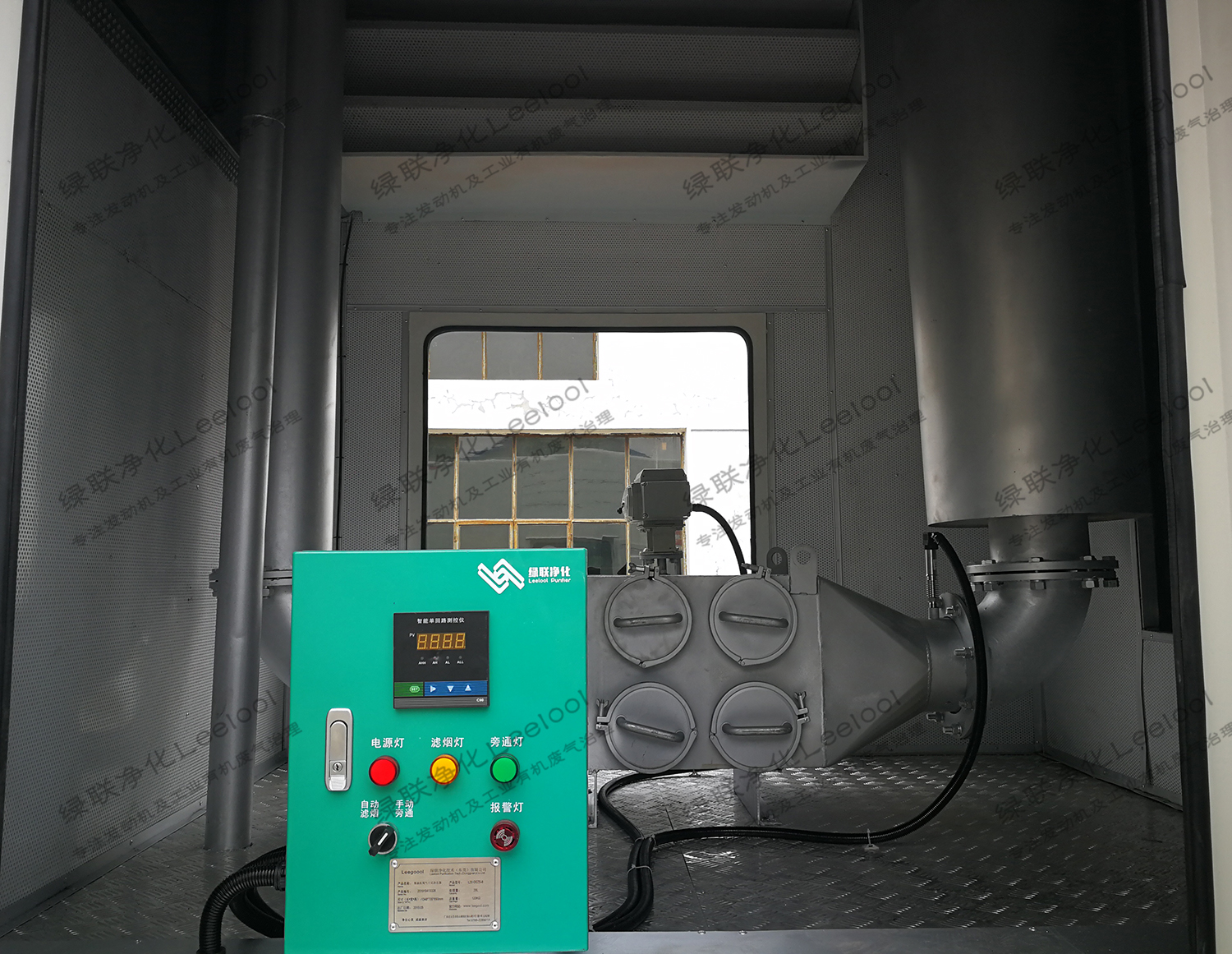 颗粒物捕集器的控制单元由压力传感检测系统、旁通系统、控制系统组成; 1、压力传感检测系统:电子压力传感器选用高精度、高稳定性扩散硅压力敏感芯片,通过可靠性的放大电器,将被测的压力数值转换成精准的电信号。高质量的传感器、精湛的封装技术以及完善的装配工艺确保压力检测的质量和性能,信号转换精准。 2、旁通系统:净化器包含旁通管、耐高温电磁阀、配合压力检测系统和控制系统。当颗粒物捕集器内部因积碳过多而达到预先设定背压限值时,控制单元控制耐高温电磁阀会自动打开旁通,确保机组正常运行。当发电机组停机冷却后,可以灵活抽出滤芯单元,自来水冲洗即可完成积碳的清理。 3、控制系统:为了保障操作人员的人身安全,绿联净化将控制系统的电压改为24V安全电压。控制系统根据压力检测系统检测及传输的数据,控制旁通系统中旁通阀的工作,保障净化器在机组上使用过程中的安全。