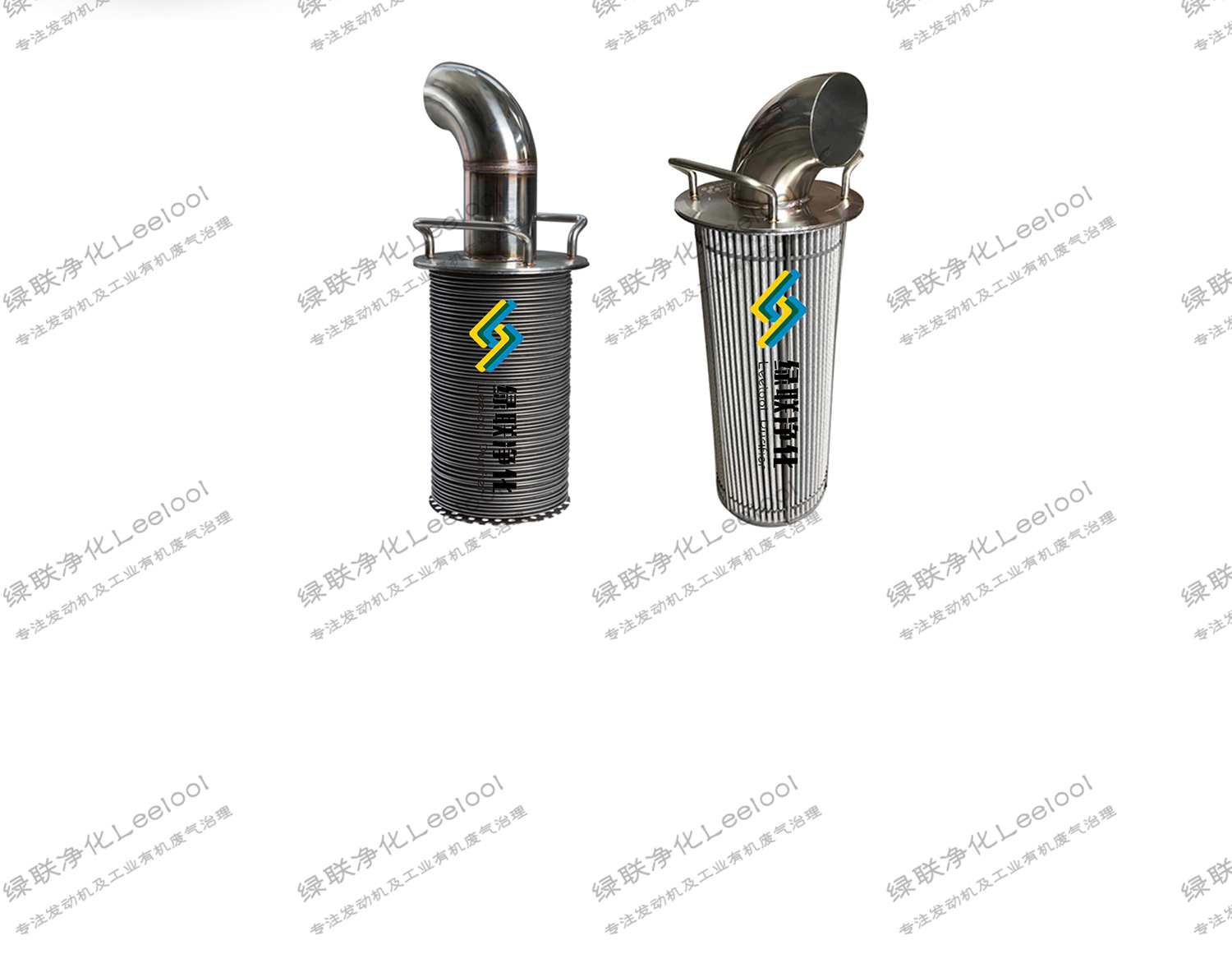 非道路移动机械用柴油机功率一般较小,排气量20L以内,工作具有间歇性,负载变化,排气温度不高等特点,针对这些情况,绿联净化开发了304不锈钢材料制成的滤网以折扇结构的DPF进行物理过滤,采用2-4个滤芯,尺寸有285mm和420mm两种,积碳达到背压极限时驾驶室前方显示屏会报警,提示进行水洗清理。