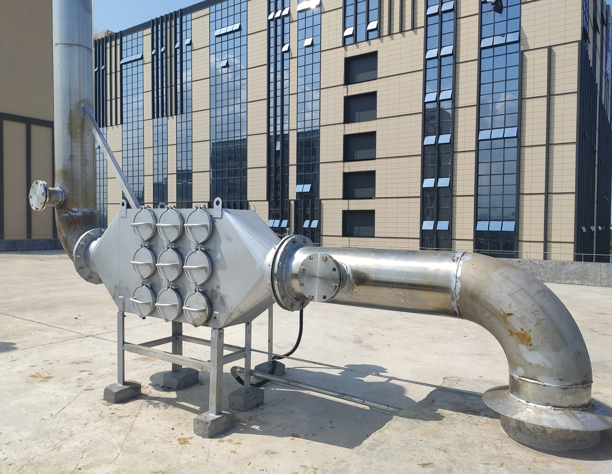 绿联净化第三代干式黑烟尾气净化器箱体采用409不锈钢,旁通采用耐高温防雨蝶阀,滤芯采用合金金属丝滤芯,永不生锈。进出口采用国标法兰,配有4片法兰片和对应螺母,便于直接安装。适用于银行、机场、数据中心、支维中心、医院、学校、地产、测试房、租赁机组等等柴油发电机组尾气黑烟净化处理,经过处理后,最终尾气处理效果满足《大气污染物综合排放标准》GB16297-1996二级,烟气黑度达到林格曼黑度1级以下,符合国家排放标准。
